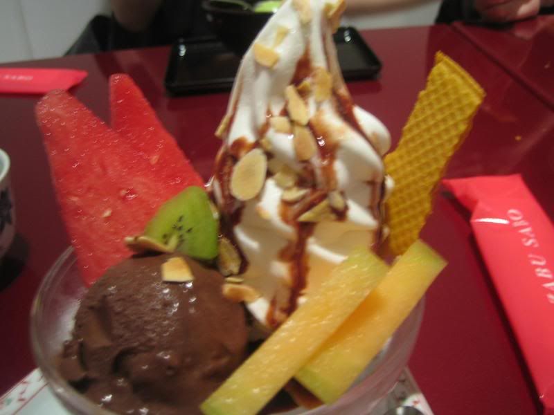 ate and crapped and caught up with one another...then proceeded on to azabu sabo for dessert...yes jap again...cant escape jap...xy and xm ordered the green tea ice cream, old man ordered some hokkaido parfait and i ordered a chocolate sundae...