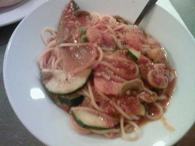 went into spaggedies...steph ordered a vegetable paradise...so healthy...again...i ordered baked pasta...and 1 more additional tomato brushetta...since we ordered set lunches...got soft drink and soup of the day...