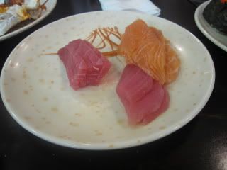 and after the beef was cooked, all got eaten in flash and with the heat still there...we put sashimi on it...and the end result...gosu salmon...