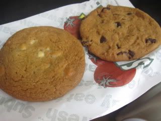 and subway...subway melt with choc chip and macadamia white chip cookies...